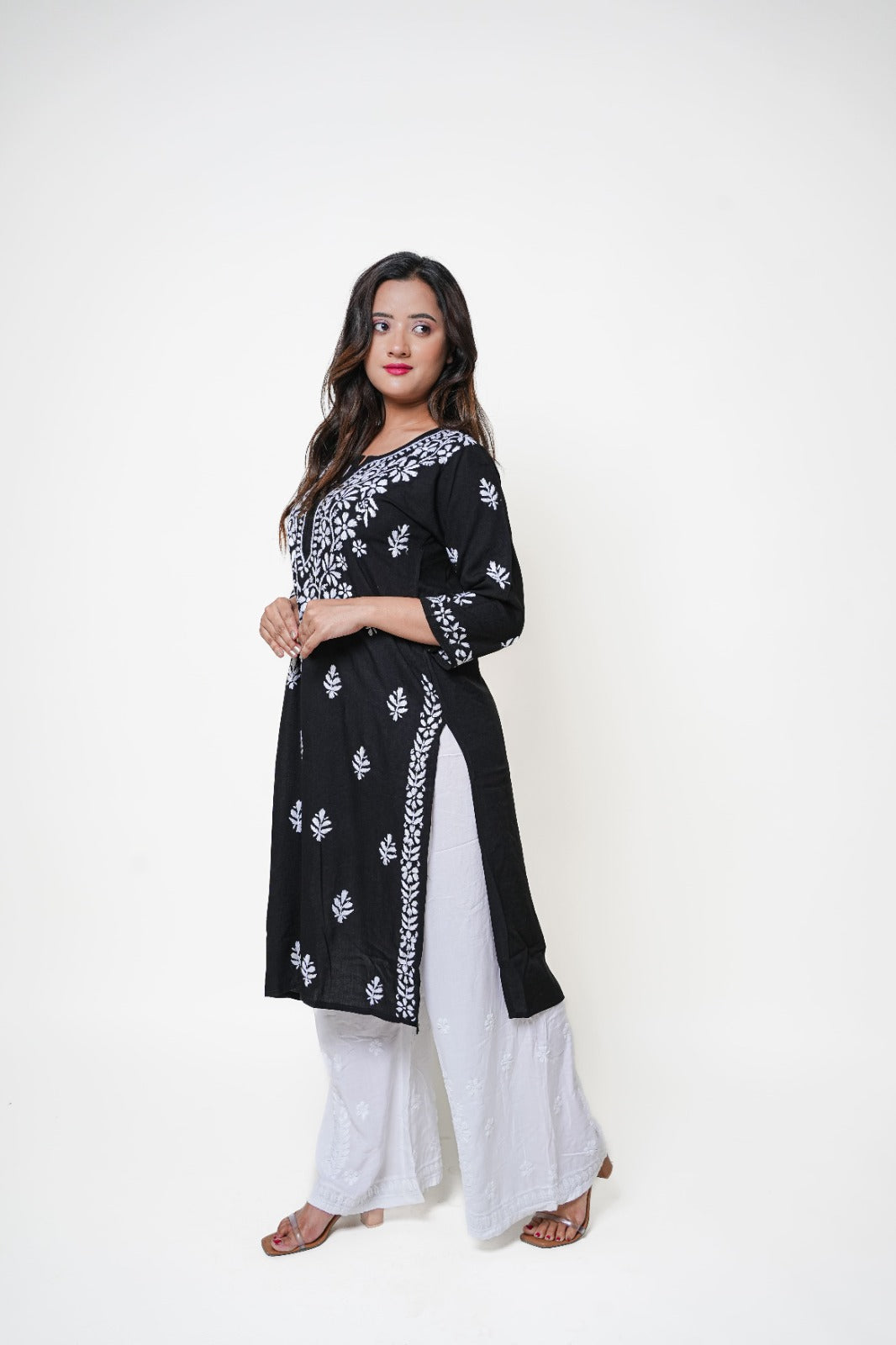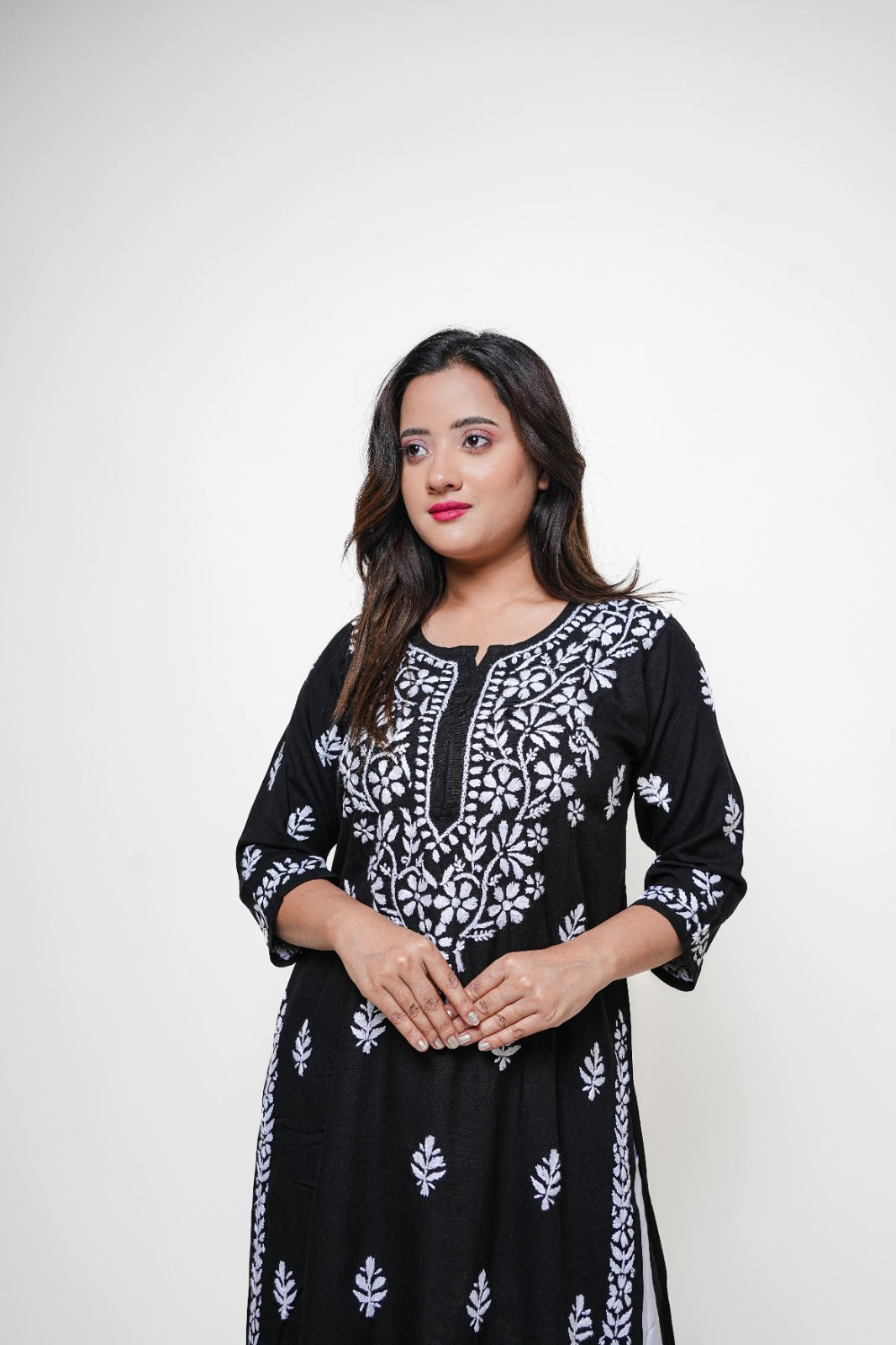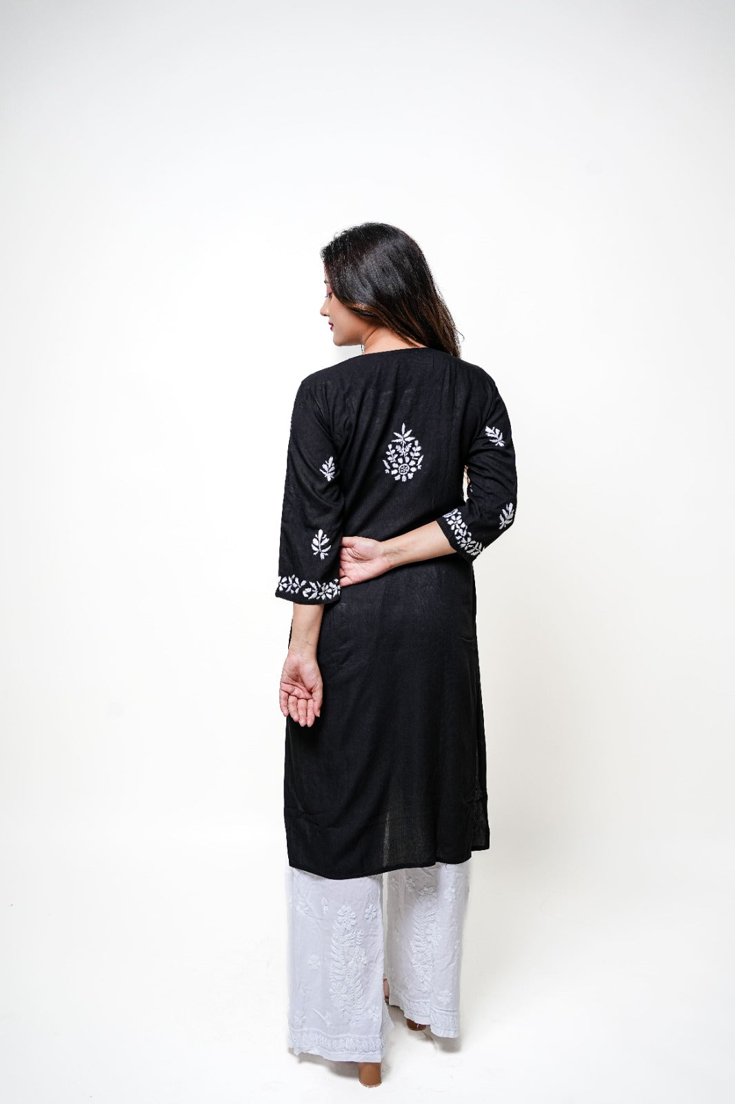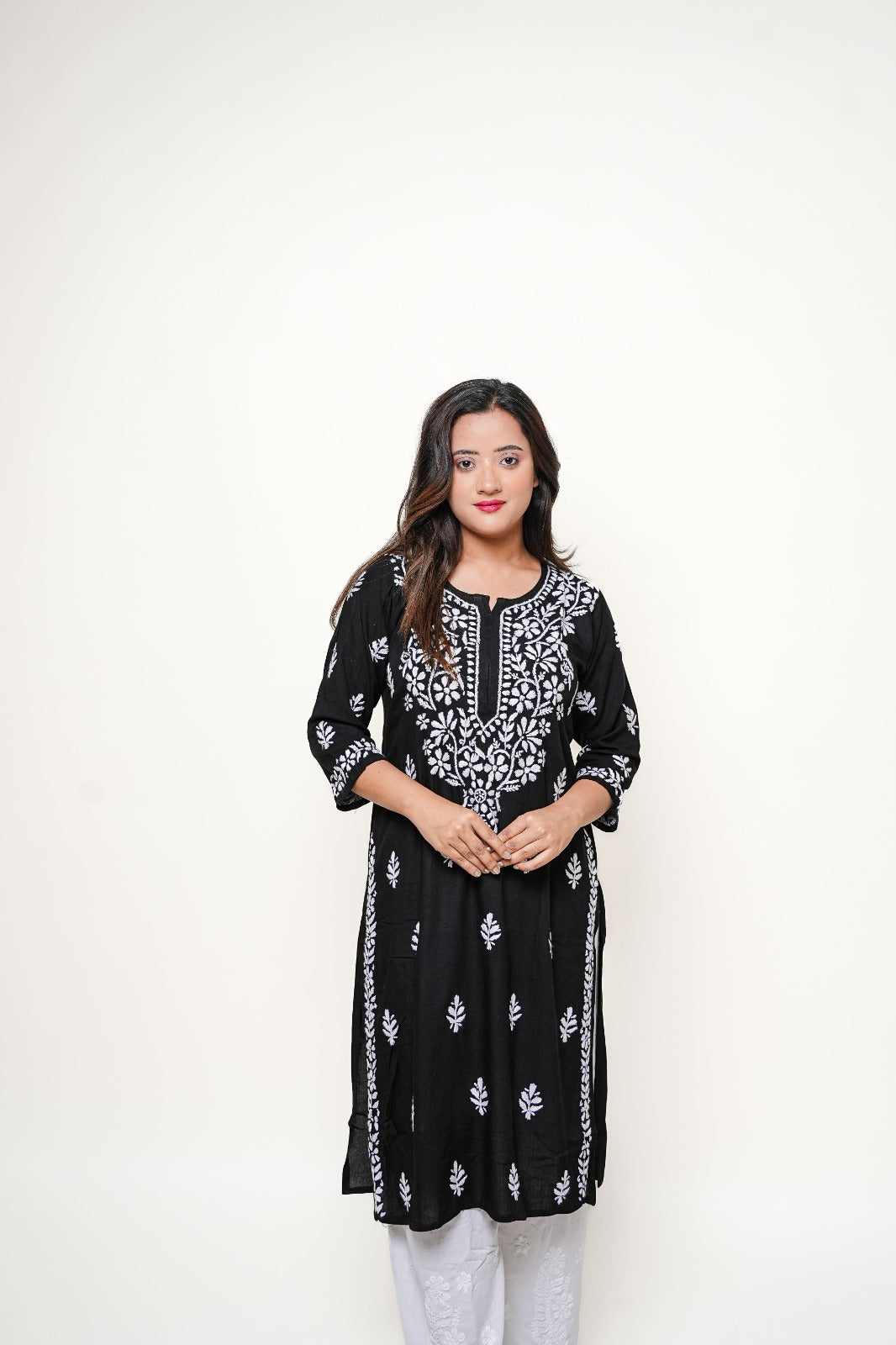 Chikankari hand embroidered | Long Kurta | Rayon | Black