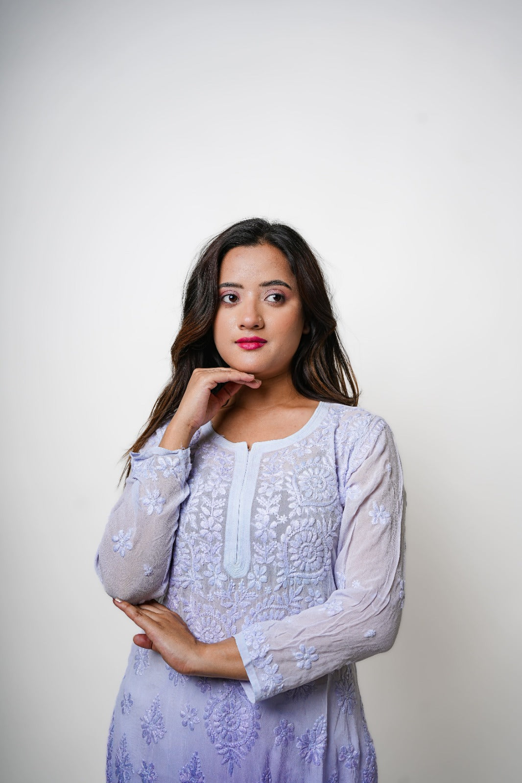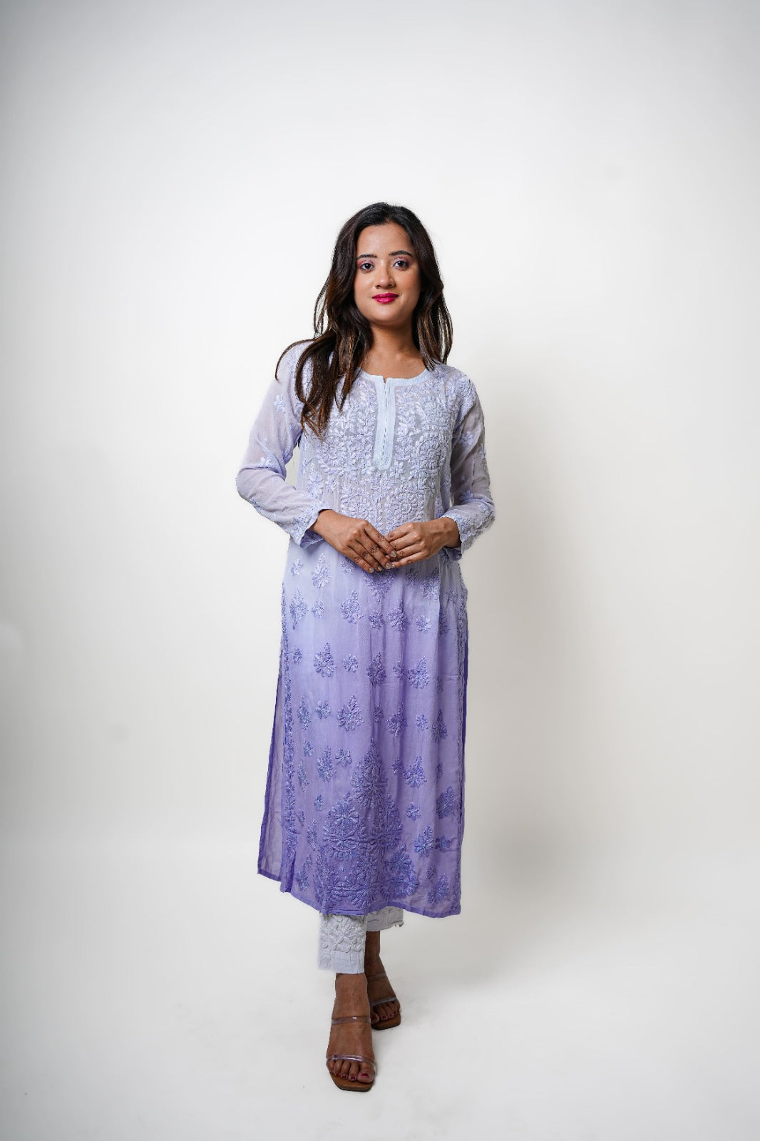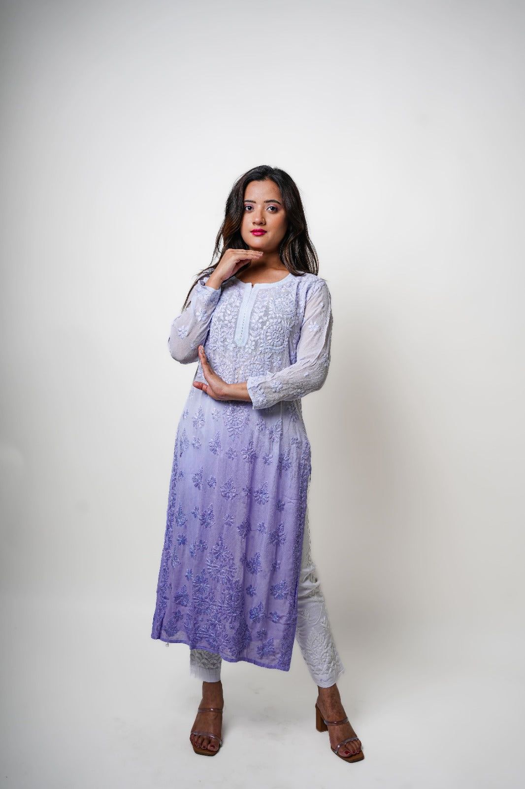 Chikankari hand embroidered | Long Kurta | Viscose | Lilac