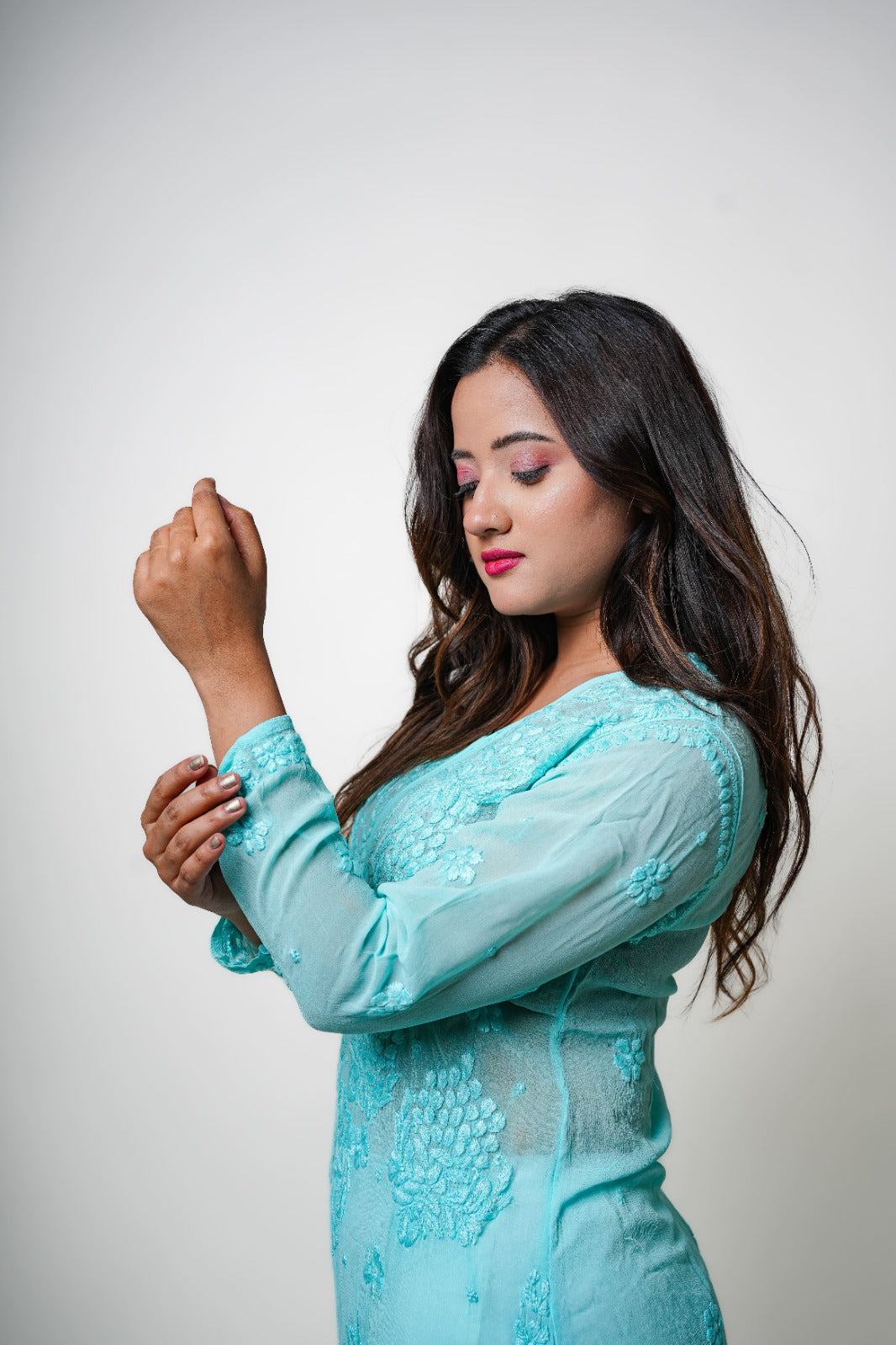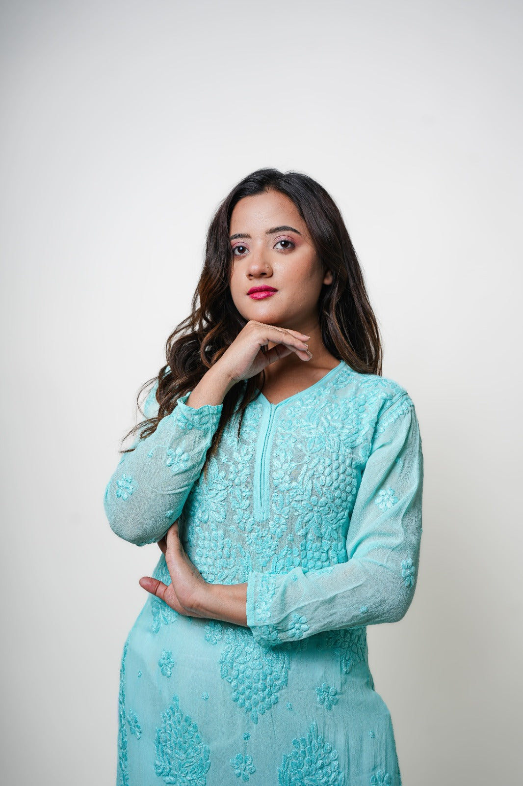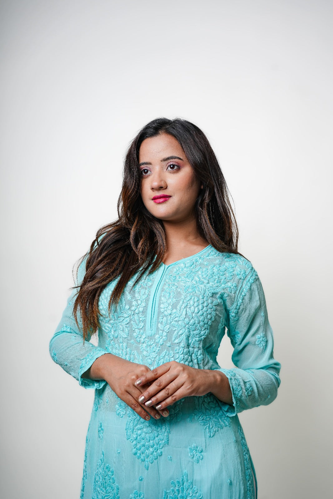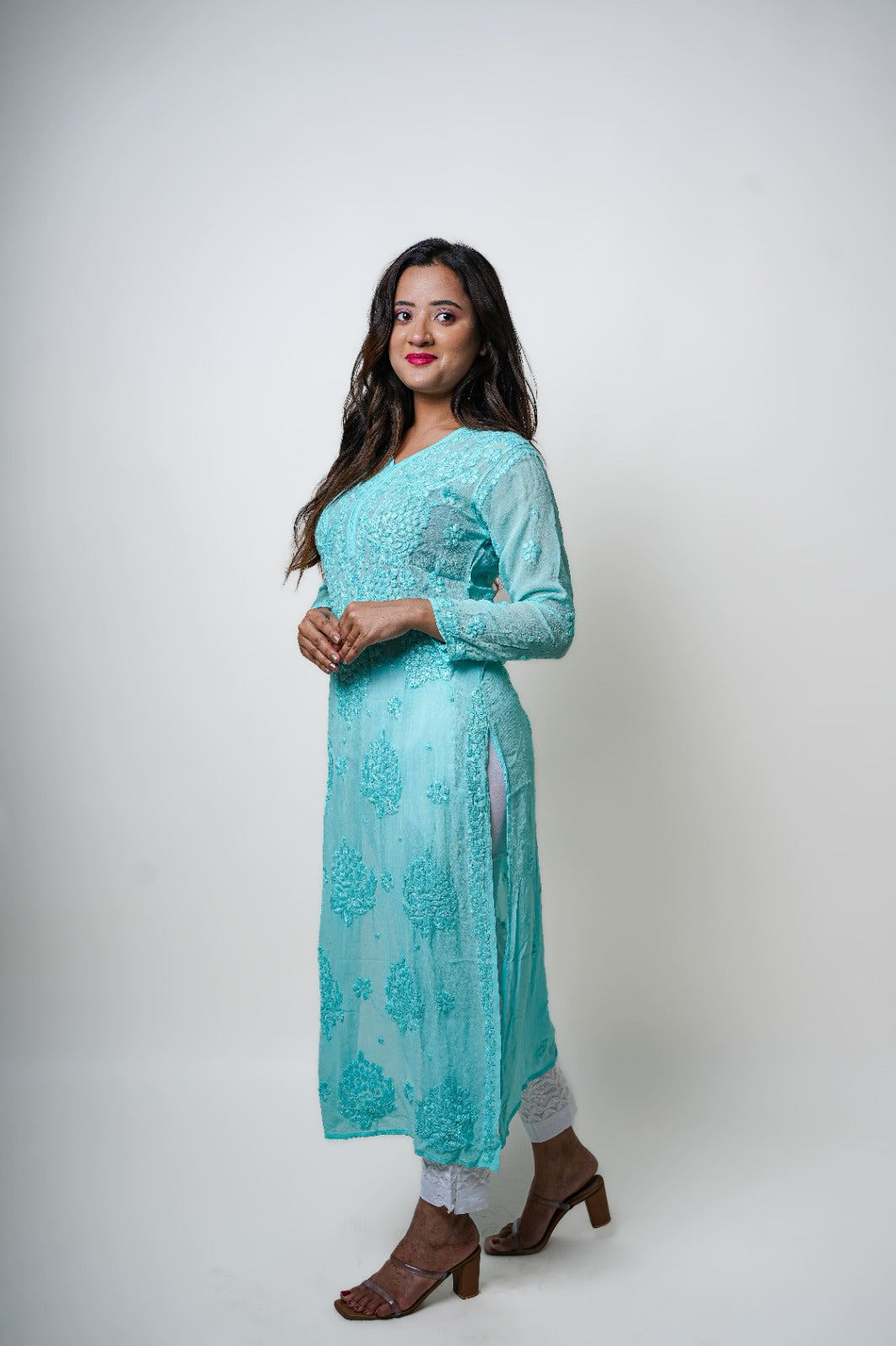 Chikankari hand embroidered | Long Kurta | Viscose | Sea green