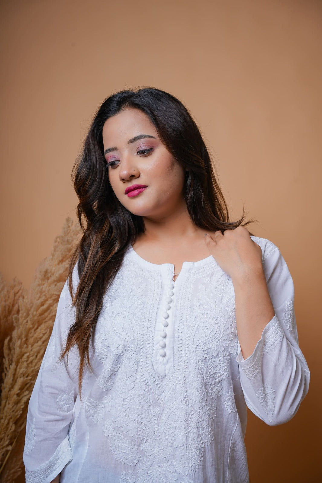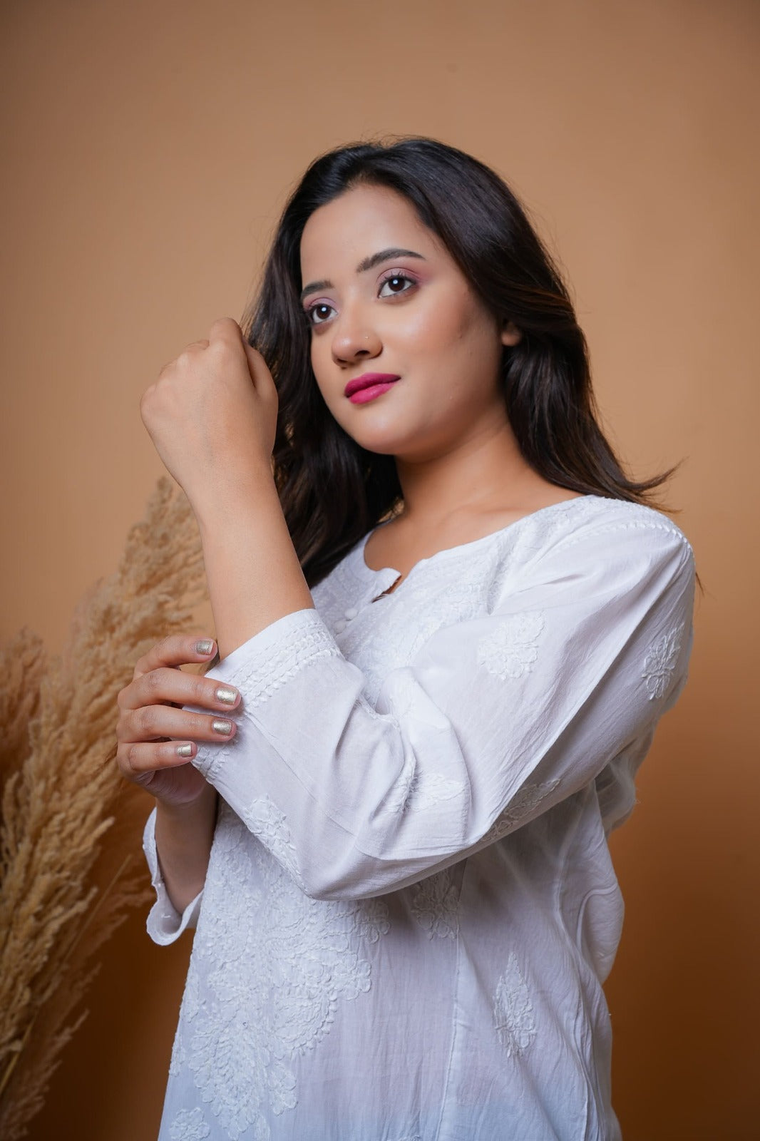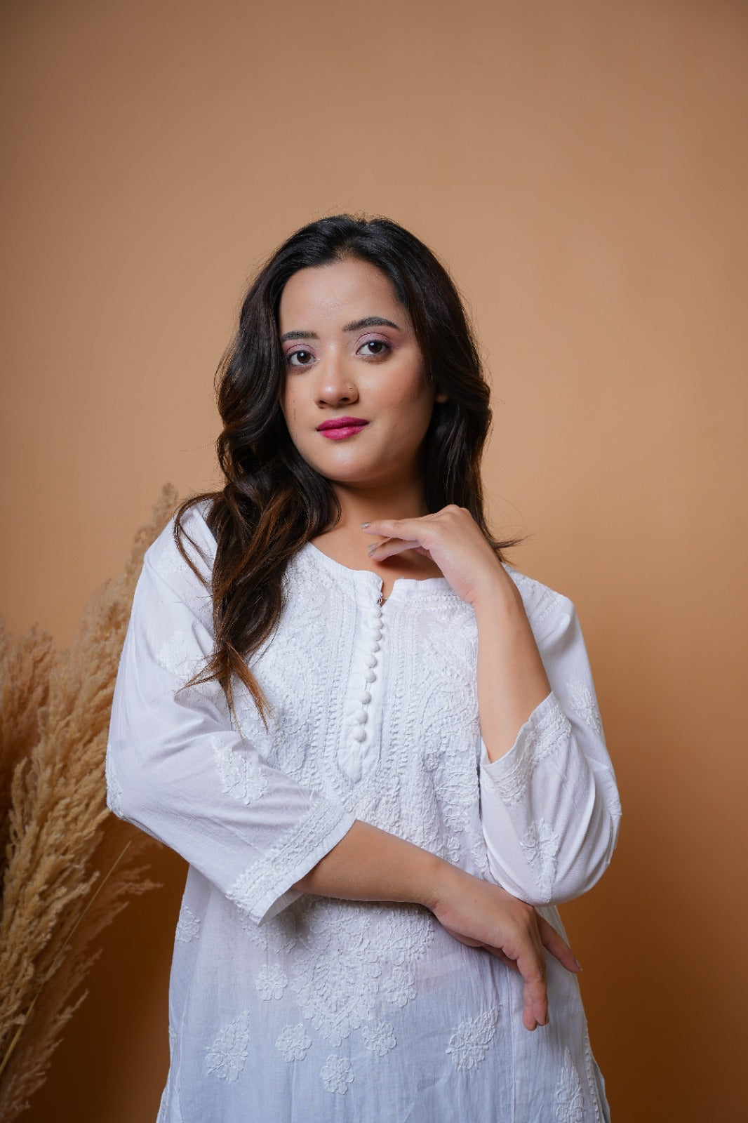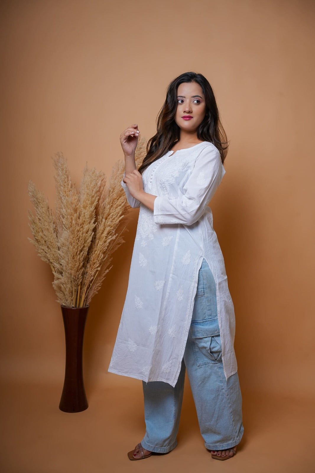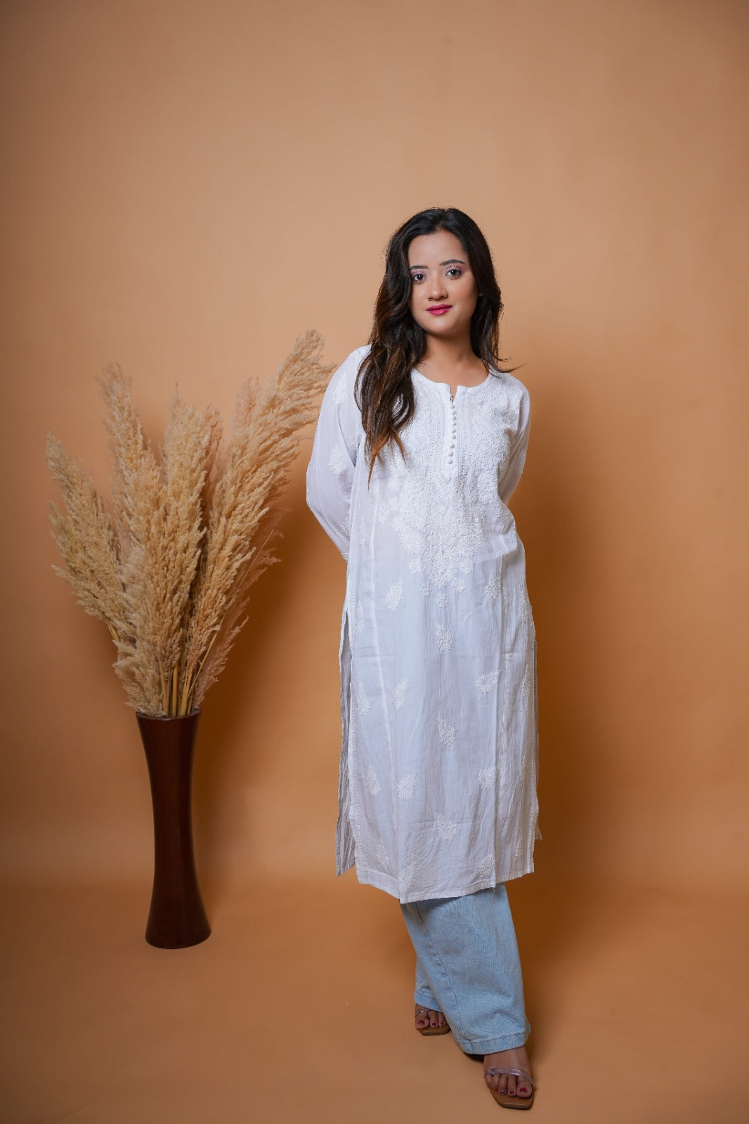 This classic white Chikankari kurta is crafted on breathable cotton with intricate white thread embroidery.