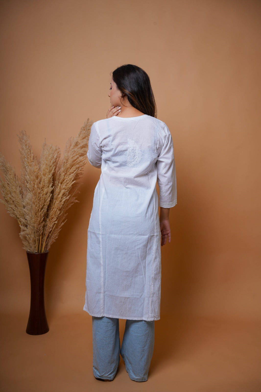 Chikankari hand embroidered | Long Kurta | Khadi Cotton | White